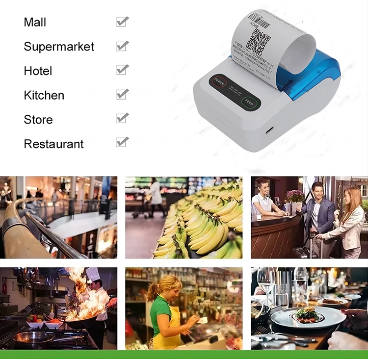 Le stampanti termiche senza inchiostro wireless Bluetooth stanno diventando sempre più popolari e sono ampiamente utilizzate in molteplici settori come vendita al dettaglio, ristorazione, logistica e sanità. Il settore della vendita al dettaglio può utilizzarlo per stampare rapidamente le ricevute degli acquisti. Nel settore della ristorazione, può stampare gli ordini istantaneamente. Nel settore della logistica, può stampare etichette per consegne espresse. Nel settore medico, può stampare cartelle cliniche e prescrizioni. Tutti questi scenari applicativi dimostrano l'elevata efficienza e praticità delle stampanti termiche Bluetooth.